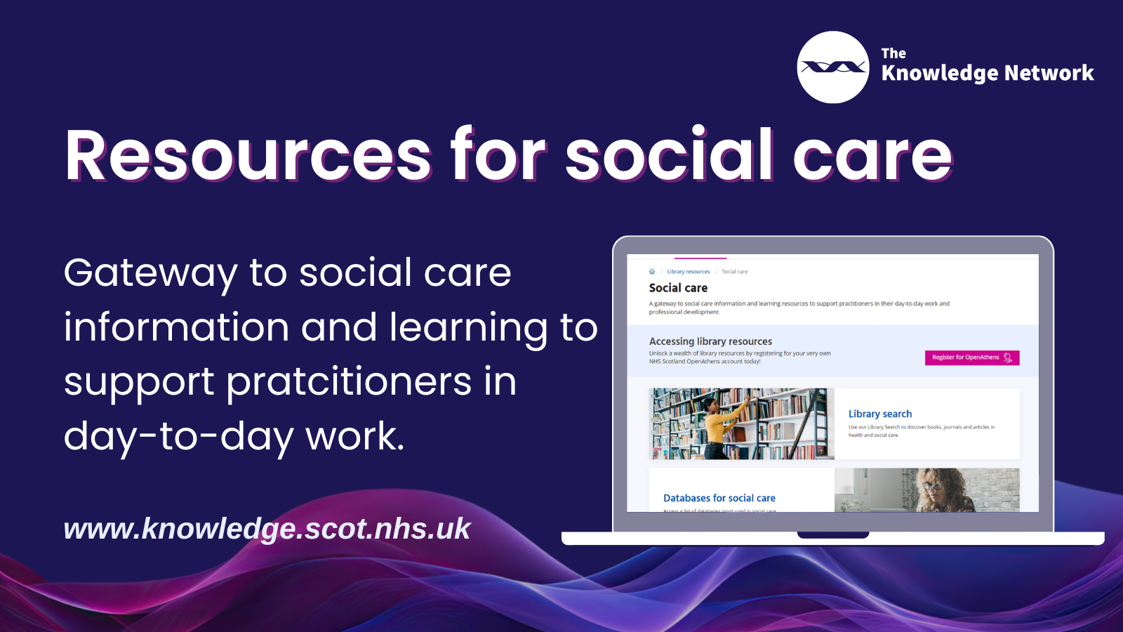 Our social care pages are a gateway to social care information and learning resources to support practitioners in their day-to-day work and professional learning: www.knowledge.scot.nhs.uk/library-resources/social-care